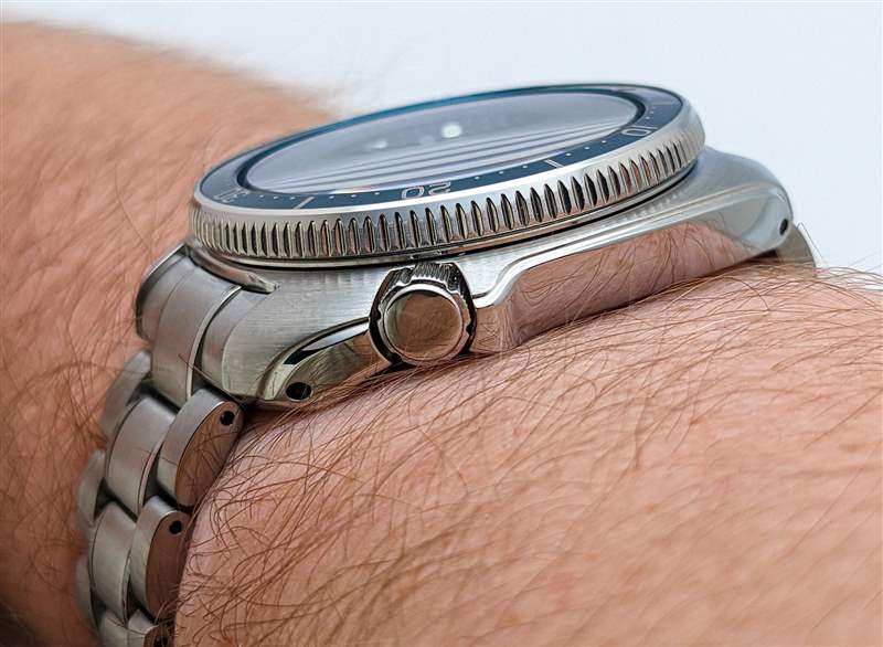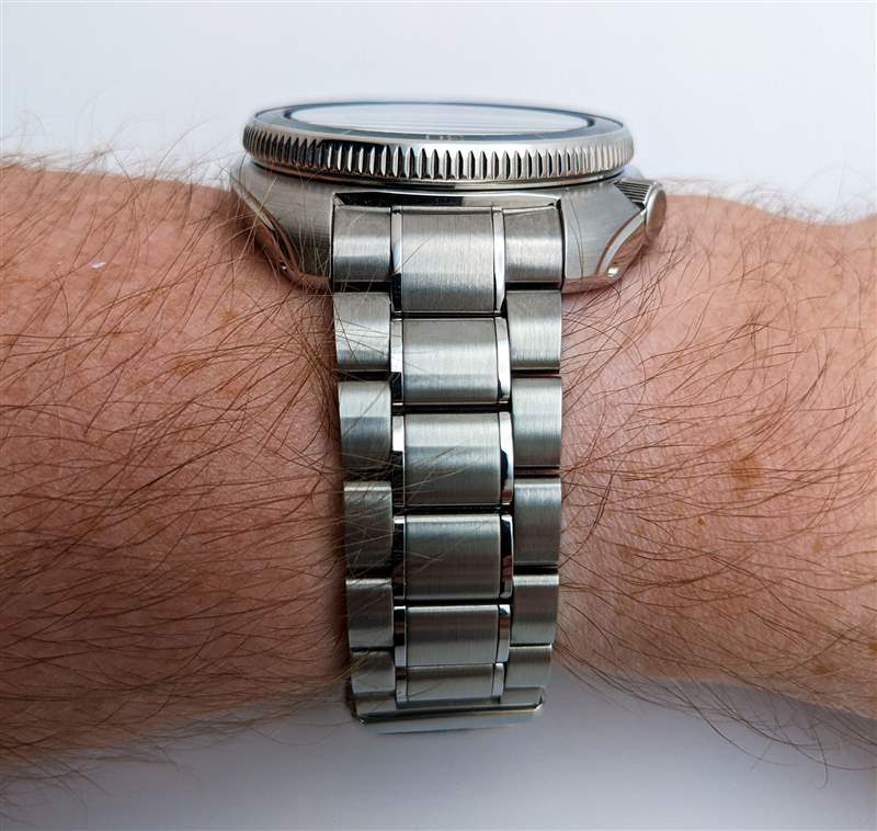 精工將 Prospex SLA063 與兩個包含的表帶選項配對。其中首先是對 Seiko 6105 的黑色橡膠“輪胎痕跡”表帶進(jìn)行現(xiàn)代重新構(gòu)想,但我們的評測樣品送達(dá)時只有不銹鋼表鏈。Seiko 的手鐲在一些愛好者中名聲不好,但 SLA063 比該品牌的普通手鐲產(chǎn)品有幾項切實的改進(jìn)。對于初學(xué)者來說,雖然乍一看可能并不明顯,但中心鏈節(jié)邊緣的拋光口音實際上是完全獨(dú)立的元素。制作這些額外的窄鏈節(jié)的決定使精工能夠在此處從平滑的垂直拉絲到明亮的拋光實現(xiàn)完美清晰的過渡,并在兩種飾面之間具有深陰影邊界的額外好處。表扣也是 Seiko 更實惠型號的顯著提升,采用全機(jī)械加工的雙按鈕設(shè)計,為手腕上的手鐲增添了令人愉悅的重量感和堅固感。話雖如此,這個表扣兩側(cè)的潛水員延伸部分非常難以操作,其鉸鏈偏心位置在實際佩戴條件下可能會使手表略微失去平衡。最后,實心末端鏈節(jié)的外形比 SLA063 的凸耳明顯更纖細(xì),這會導(dǎo)致明顯的下降,這可能會阻止習(xí)慣于嵌入式末端鏈節(jié)設(shè)計的愛好者。其鉸鏈?zhǔn)狡奈恢迷趯嶋H佩戴條件下可能會使手表略微失去平衡。最后,實心末端鏈節(jié)的外形比 SLA063 的凸耳明顯更纖細(xì),這會導(dǎo)致明顯的下降,這可能會阻止習(xí)慣于嵌入式末端鏈節(jié)設(shè)計的愛好者。其鉸鏈?zhǔn)狡奈恢迷趯嶋H佩戴條件下可能會使手表略微失去平衡。最后,實心末端鏈節(jié)的外形比 SLA063 的凸耳明顯更纖細(xì),這會導(dǎo)致明顯的下降,這可能會阻止習(xí)慣于嵌入式末端鏈節(jié)設(shè)計的愛好者。