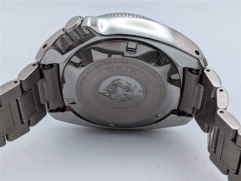 與許多 Seiko 表殼一樣,Prospex SLA063 在實踐中違背了它的尺寸。由于短表耳和嚴(yán)重的表殼底切相結(jié)合,最大限度地減少了其在手腕上的足跡,因此這款手表的佩戴比其 44 毫米寬的直徑建議的要小得多。精工專有的超硬涂層應(yīng)該有助于這款表殼在購買后很長一段時間內(nèi)保持無劃痕,同時不會放棄不銹鋼的傳統(tǒng)外觀。話雖如此,SLA063 外殼的特殊形狀可能并不適合所有口味,尤其是在這個(相對)較高的價格點(diǎn),愛好者更習(xí)慣于傳統(tǒng)的豪華潛水員設(shè)計。Seiko 在這款表殼的頂部飾有堅固的雕刻底蓋,底蓋上印有該品牌熟悉的波浪標(biāo)志,并為這款手表評定為符合 ISO 標(biāo)準(zhǔn)的 200 米防水性能。